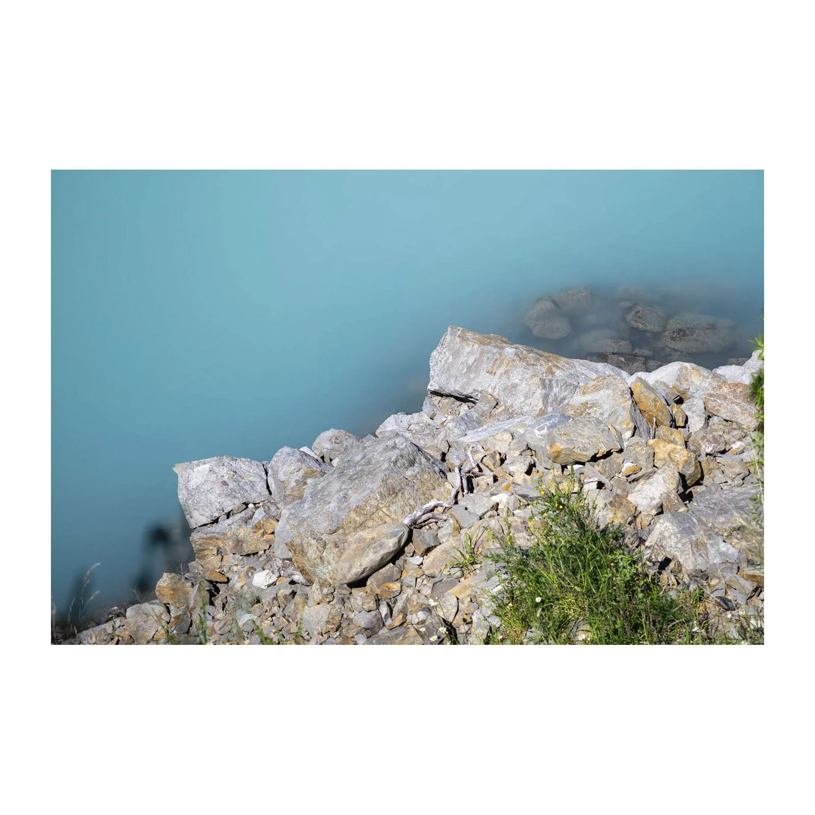 A surreal luminous turquoise glows evoking the essence of the confluence of rocks and water. Pulverised rocks ground down to a fine-grained powder that flow downriver suspended in the water. Visual stimuli dominate the human senses and the reflecting sunlight scatters blues and greens to an almost unnatural level and trigger responses to the sublime colour.